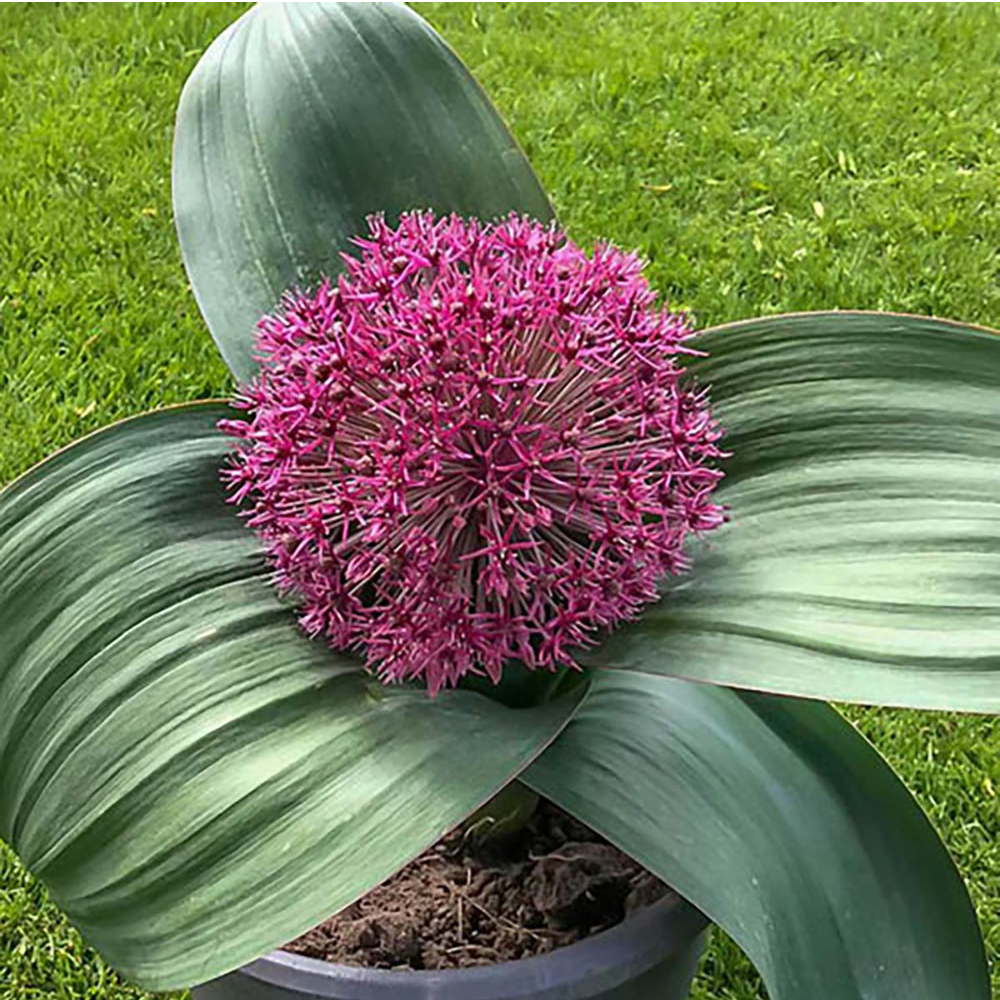 Don't be fooled by this allium's short stature. It produces up to 5" ball-shaped clusters of red-purple flowers that rise above the foliage. These long-lasting flowers make quite a statement in the garden--and they attract hummingbirds, bees and butterflies.