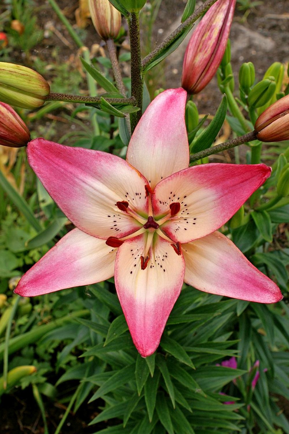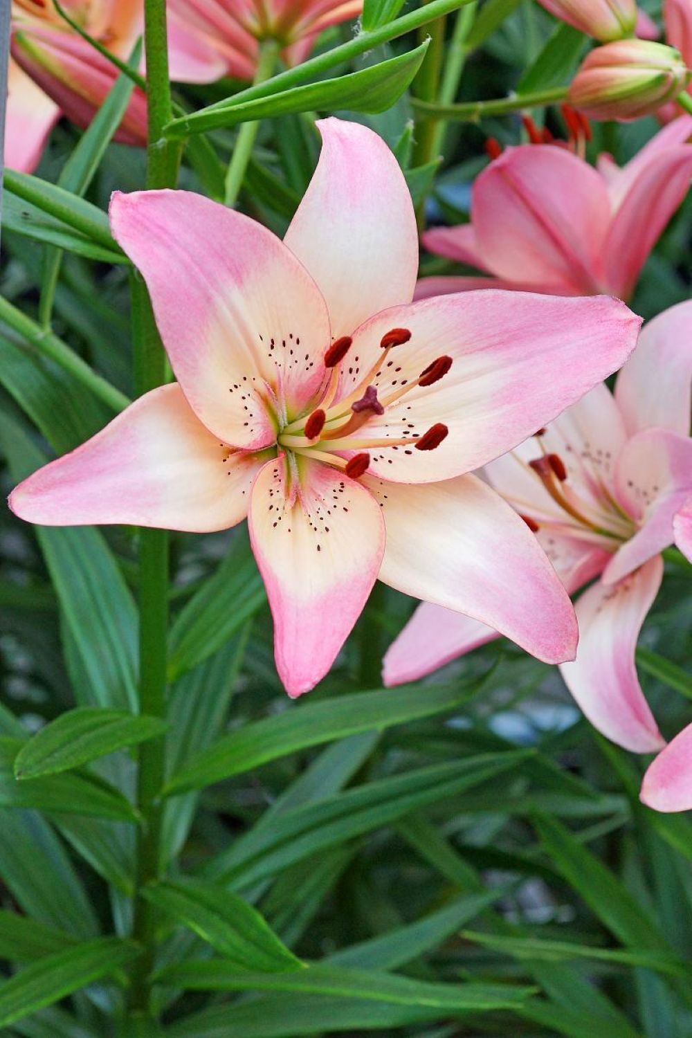 Hybrid Asiatic. Pastel pink with a dusting of freckles.