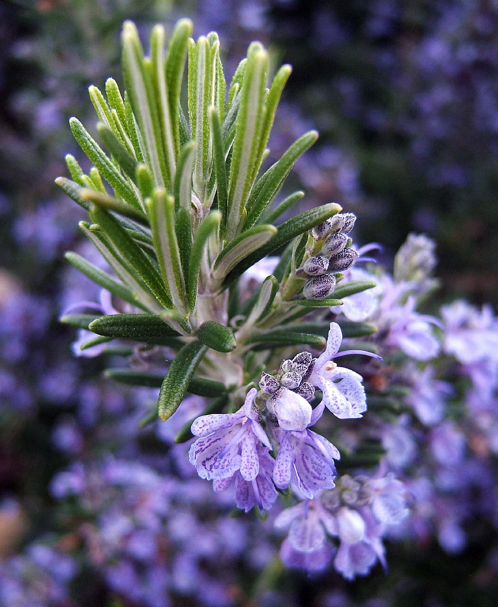 Rosemary is a vigorous, easy to grow herb with very broad leaves. The flowers are dark violet-blue. It is outstanding for culinary use. It blooms in the summer and prefers full sun. Rosemary does best with excellent drainage and can go dry between waterings. It is even considered drought tolerant! It grows 4' tall, but can be kept trimmed at any height. It is hardy to 0 degrees F. (zones 7-10). In cooler regions it can be grown as a house plant in a sunny window or as a patio plant, outside during the summer, and indoors during the winter.