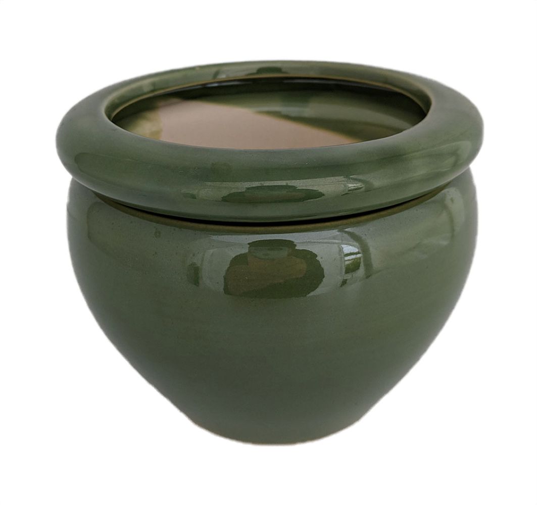 Round Self Watering Glazed Ceramic Pot - Green - 6 1/4 x 4 3/4"
