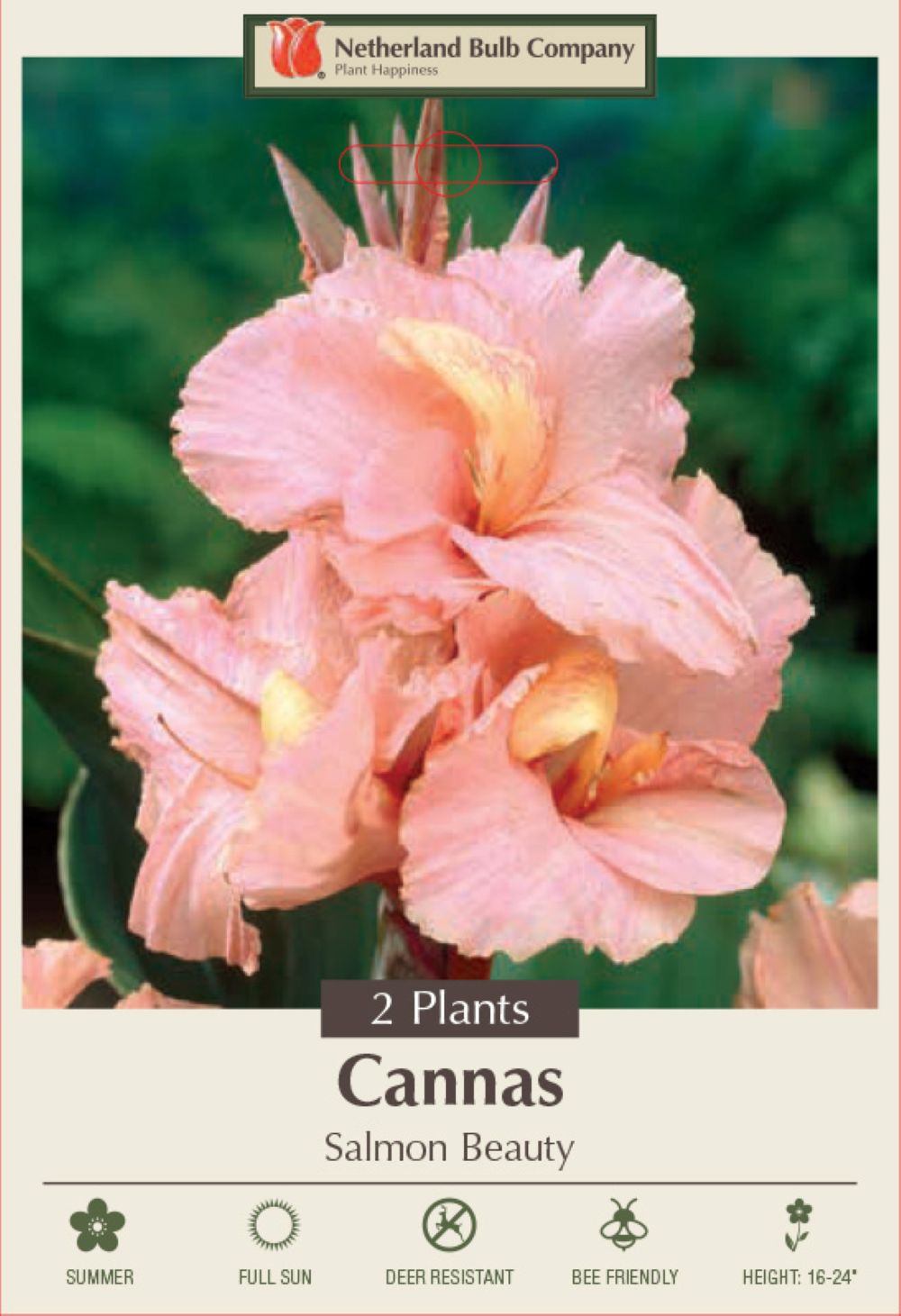 Canna are extremely easy to care for in moist, well-drained soil in full sun. Plant in a container or garden setting, be sure to water well and often. Plant roots horizontally with sprouts facing upwards. Water well during growing season.