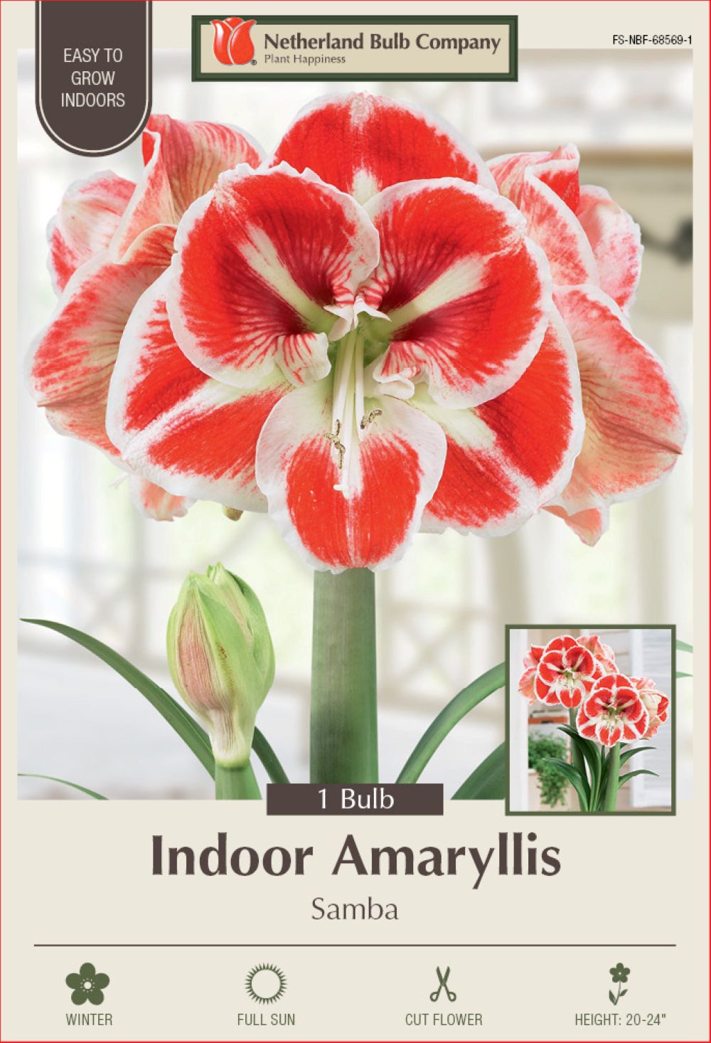 Samba Giant Dutch Amaryllis - Red & White Bicolor - 34/+cm Bulb