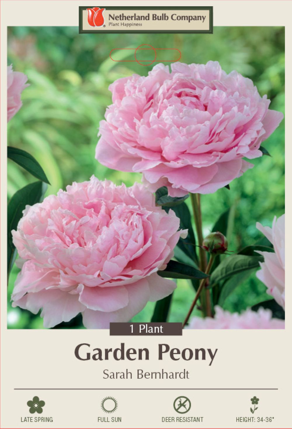 Peony 'Sarah Bernhardt' (Paeonia lactiflora) Large fragrant pink flowers are especially prized for bouquets. Peony flowers are full and large (5-7" across) and their fragrance is enticing and sweet. Their desirability as cut flowers is legendary. Even after blooming, the foliage adds interest in the garden and is useful in flower arrangements. Our low maintenance varieties thrive in full sun and rich, deeply cultivated, well drained soil. They like rich soil, full sun and open areas. Blooms May through June