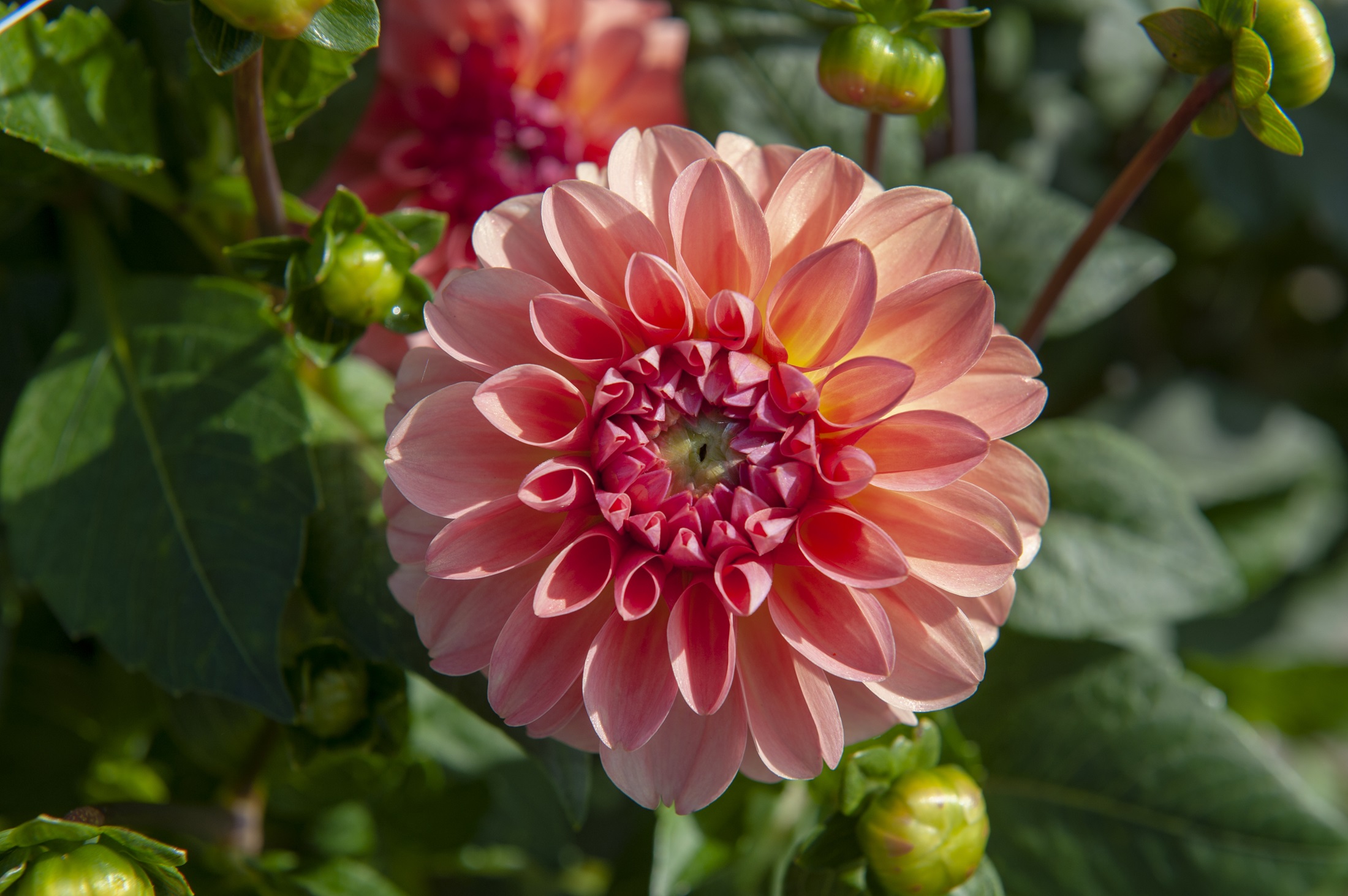 This unique small sized flower is a great reminder of sweet strawberry lemonade when in a bouquet next to you. This tropically fun flower is a coral delight, with light salmon petals around the edge of the flower and more purple coloring towards the center. While Sebastian has a shorter plant stature it is a prolific bloomer and this happy dahlia can take you back to warm, joyful, tropical days.