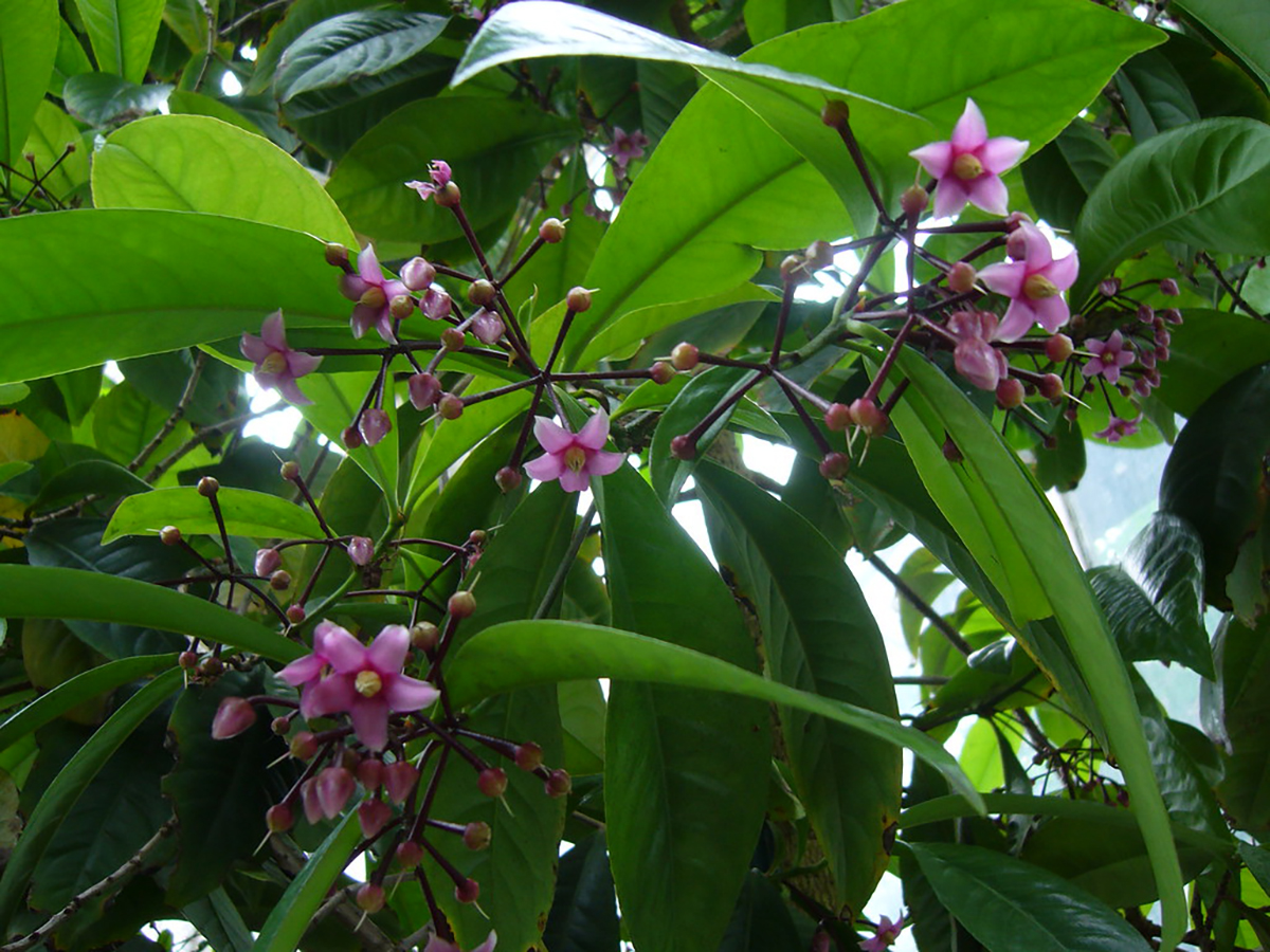 Ardisia humilis is a slow-growing tropical shrub with elongated leaves that emerge red and fade to green. We rarely see tropical shrubs as houseplants, so we are stoked to offer this plant! While its foliage is beautifully dense and glossy, the most breathtaking part of this plant are its unusual, pink blooms. With enough light, the plant will grow clusters of showy, star-shaped flowers that look similar to the blooms of Hoya multiflora. The blooms are followed by colorful ornamental berries. Medium to bright, indirect light. Water when top half of soil dries out. This plant appreciates extra humidity and prefers not to dry out entirely. We cannot ship this item to the state of Florida