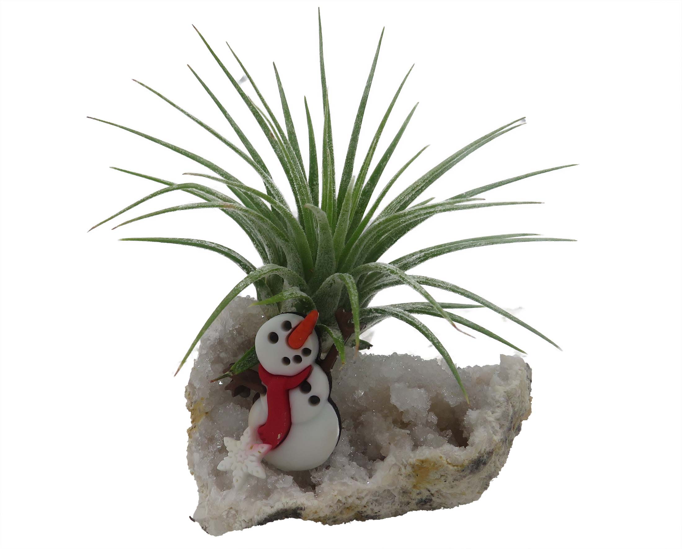 Snowman Christmas Geode with Live Air Plant - Tillandsia