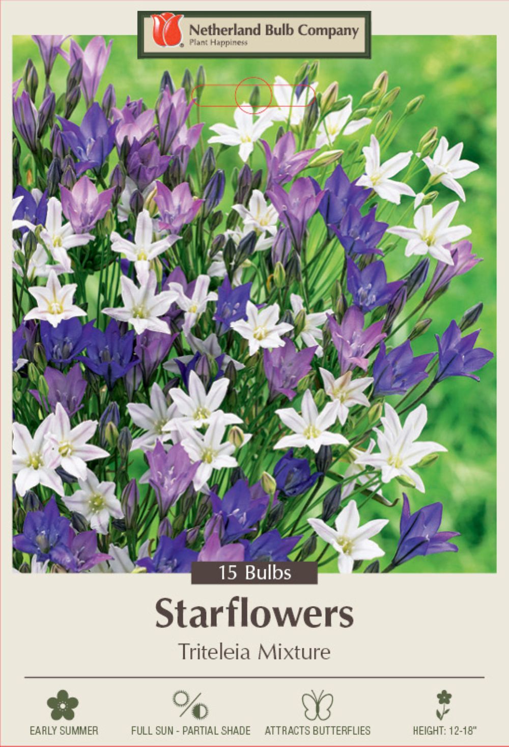 The beautiful wild species, Triteleia laxa, is native all the way south to Southern California. The flowers look much like clusters of the beautiful Blue Eyed Grass, which is a small wild iris. This mixture gives you the blues and whites. Better Homes and Gardens recently had an article showing how it's great for cutting and creating stunning arrangements. BH&G also tells us that the foliage of this bulb is nothing much, so it's best planted among hostas or other low foliage plants, so the stunning flower spikes rise through neighboring leaves.