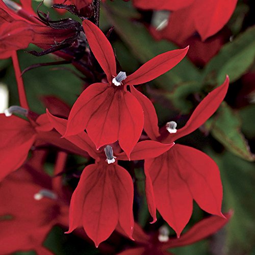 Doesn't Mind a Bit of Shade or Wind! Hummingbirds love its long, late season! The combination of big, wide-open, butterfly-shaped scarlet blooms and near-black stems is electrifying on this compact, free-flowering Lobelia! More tolerant of wind and shade than others, it is a joy for the perennial border and the vase, with a long, late season of bloom. Starship Scarlet earns its name with the eye-catching shade of red borne on its blooms, but its merits go far beyond beauty. It is a hummingbird magnet, and because it flowers from midsummer into mid-fall in most climates, you get a longer season of winged visitors! Also, it is simply more floriferous than most others, with a columnar habit that packs a lot of color into very little garden space. Although Starship Scarlet is 20 to 24 inches high in bloom, it's seldom more than 8 inches wide. Very effective in small gardens and tight spaces! This Lobelia is a hybrid of several species, with the best characteristics of each. It thrives in moist soil, but does not mind dry conditions, especially after it's had a season or two to establish in the garden. (Wet soil it will not tolerate.) A good choice for containers, its straight up-and-down habit complements all the mounding and trailing varieties out there today.