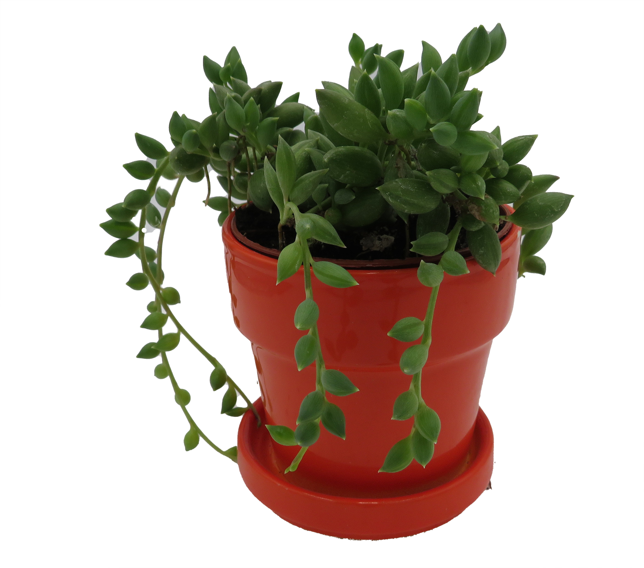 Calling all Football Fans! This String of Footballs plant with Orange Mini Ceramic Pot + Saucer will be a great addition to your collection. The Football Plant is a member of the senecio family, which also includes 'Dusty Miller', 'German Ivy' and 'Cineraria', to name a few. Although the senecios vary widely, they have similar requirements and many of their delicate, succulent tapestries fill the same horticultural niche.