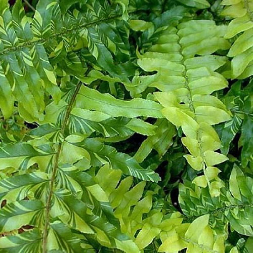 The incredibly beautiful Tiger Fern (Nephrolepsis exaltata ‘Tiger Fern’) is a Boston-type fern, whose green leaves are marbled and streaked with a variegation that resembles a tiger’s stripes.