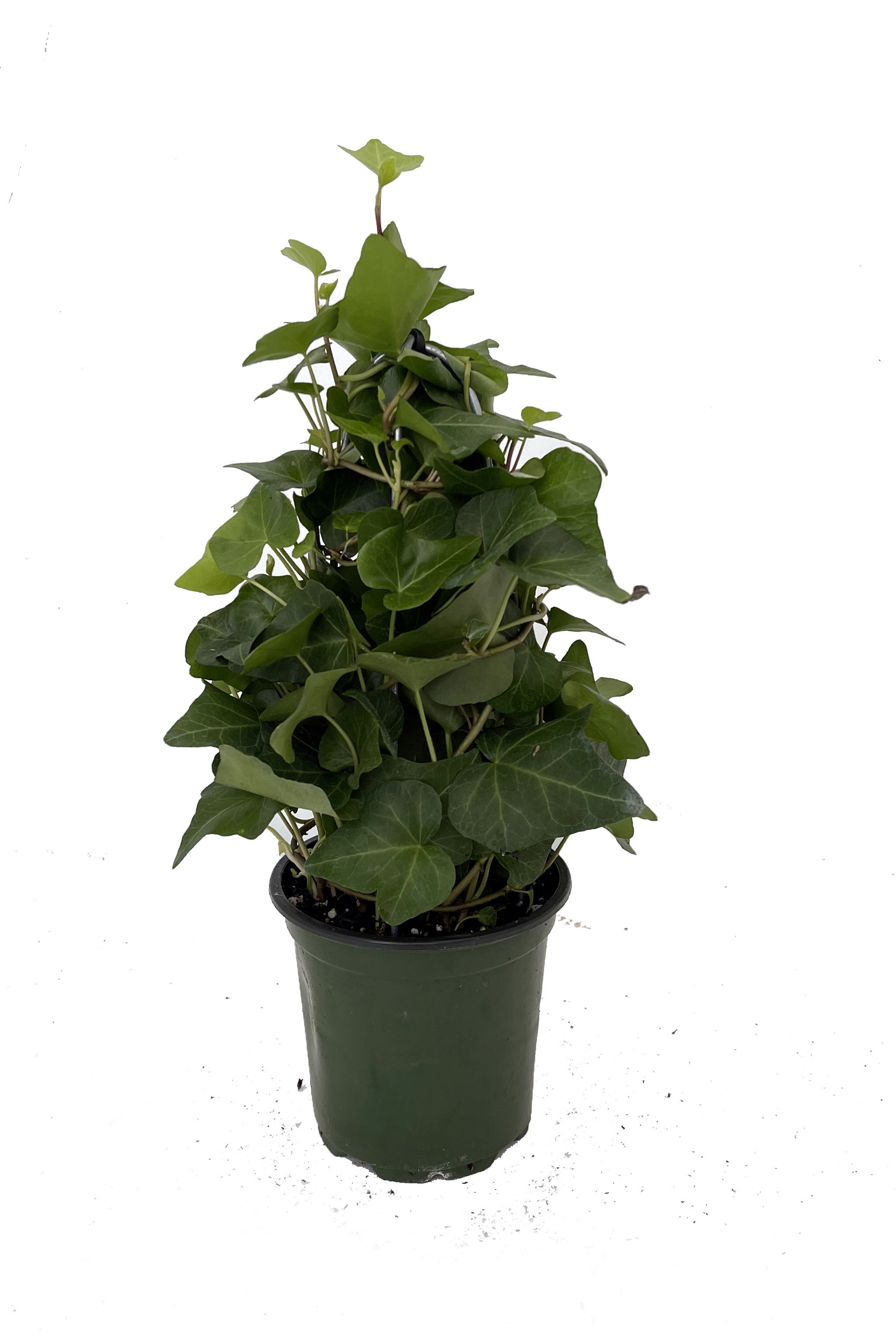 Hedera helix is commonly referred to as English ivy because English settlers brought it to America. Most species are native to Northern and Southern Europe and Northern Africa. Ivies are climbing vines that cling to upright surfaces by their roots, which sprout from the stems and work into any available crevice. Given the support of a thin stake, a single stem can be trained to grow upward and then branch out to make a little ivy tree. The vines can also be trained to cover fanciful shapes formed of wires stuffed with sphagnum moss. Usually, the trailing stems are allowed to cascade over the sides of pots or hanging containers.