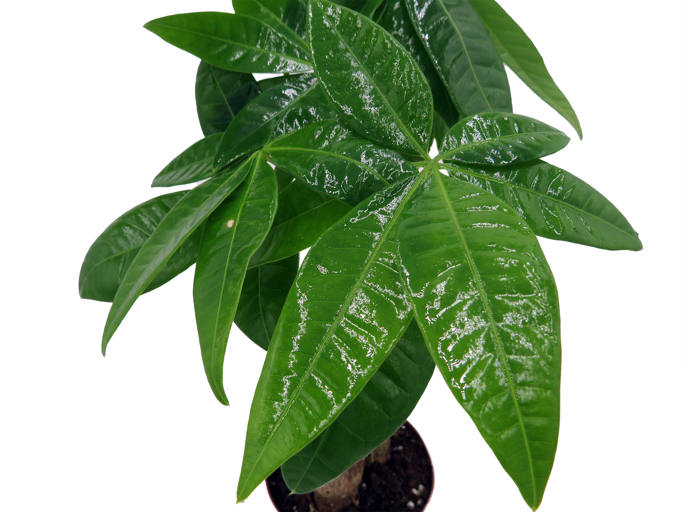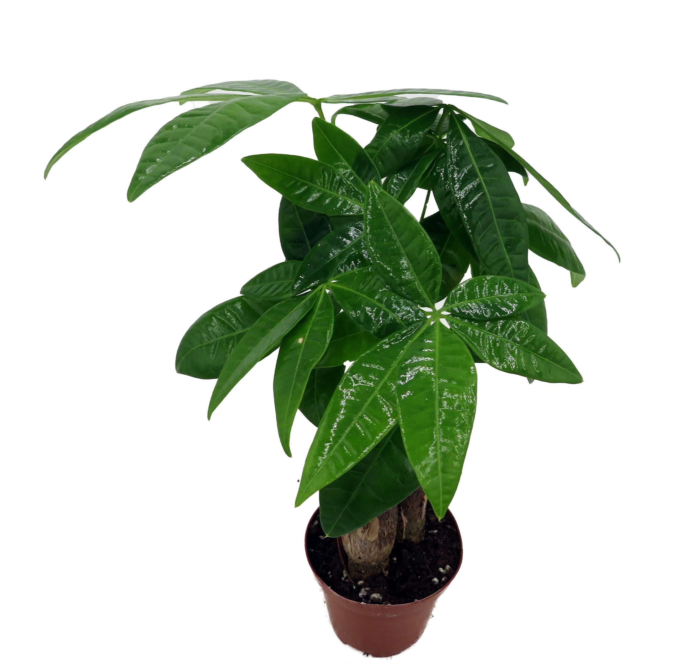 According to Feng Shui masters, the Money Tree or Pachira is thought to bring good fortune and luck to those who place it in their home or office. As the Money Tree grows, it will sprout new stems of leaves which will unfold into a five leaf stem. Place the plant in bright, indirect light and keep evenly moist, not wet or dry. The Money Tree also makes an excellent office plant, thriving under artificial light.