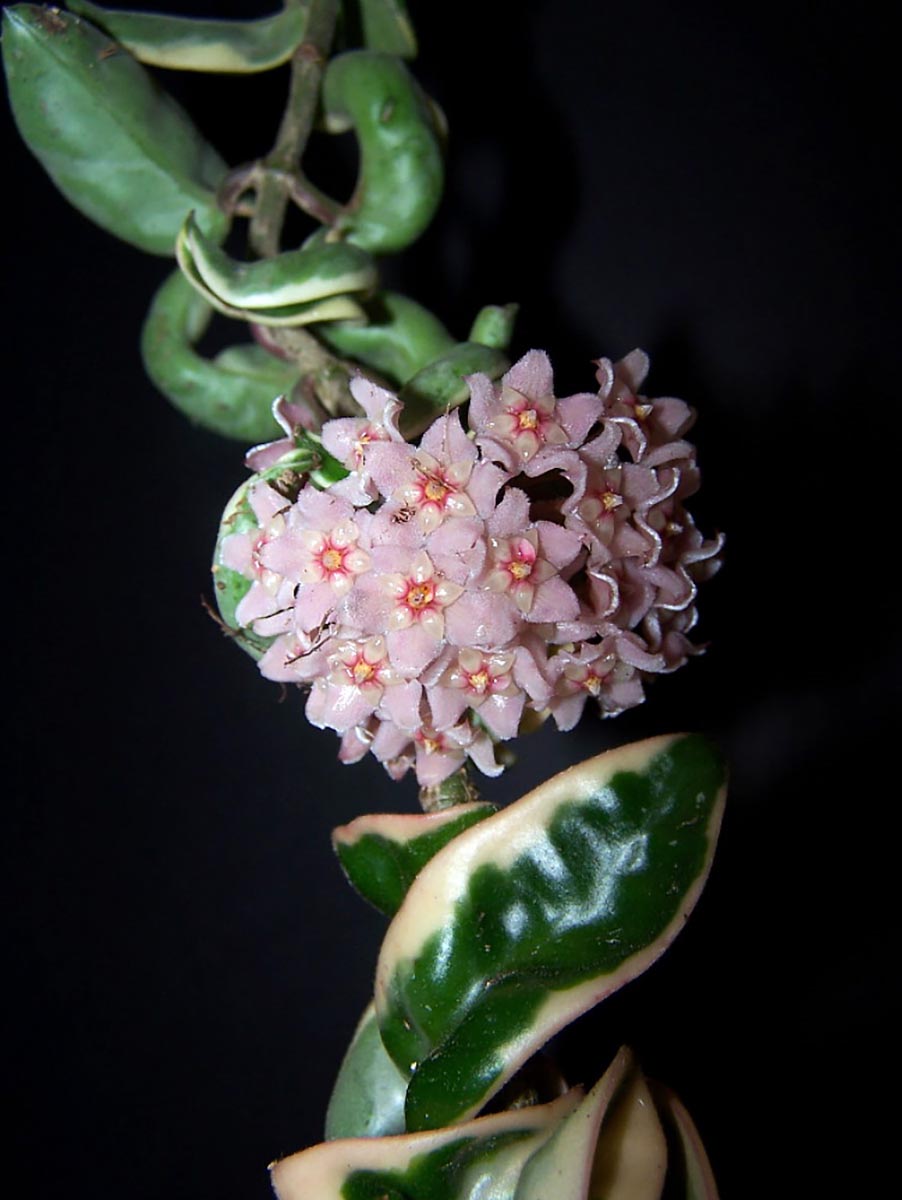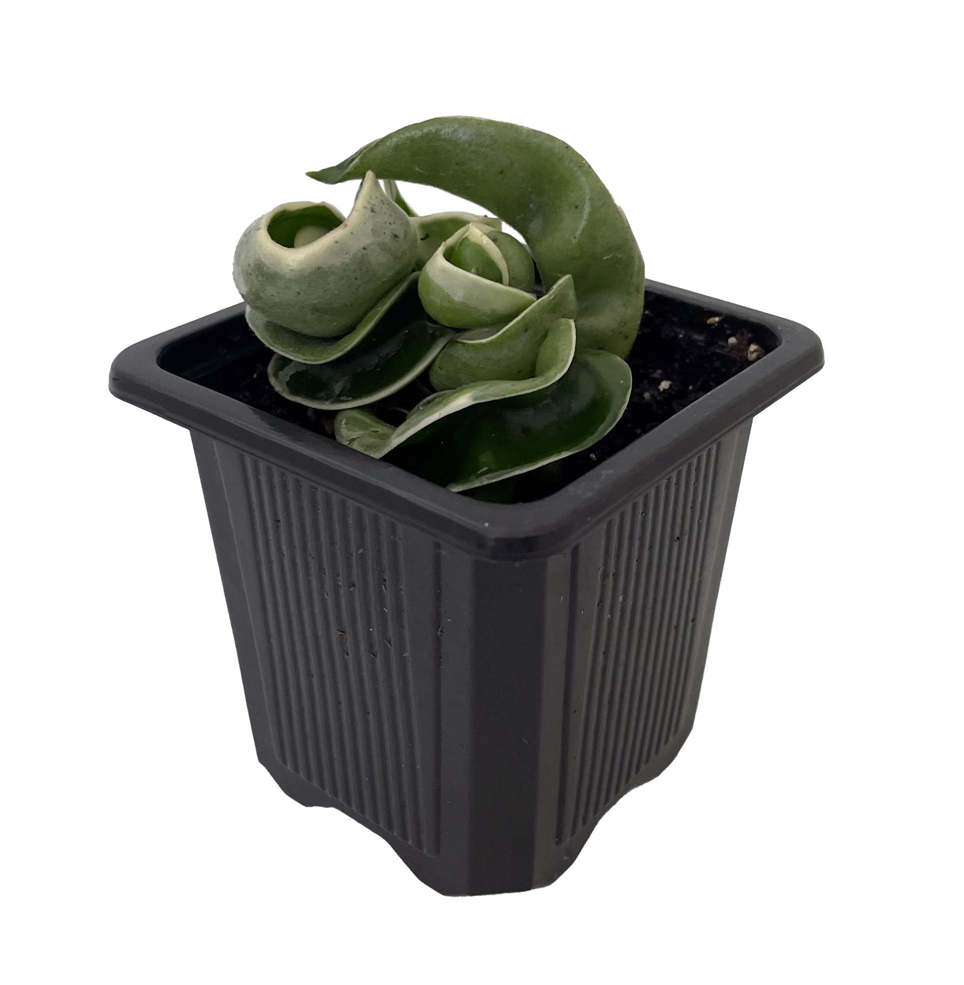 The Variegated Hindu Rope Plant is an exotic house plant native to the far east. It is rather easy to grow and can reach lengths of over 8 feet! The plant is easy to grow. It does best in a filtered light window and watered when dry. The plant prefers to be pot bound. The plant has thick, convoluted, green, pink, and white leaves, arranged on trailing, twisted stems. Small, white, waxy flowers have red centers and are very fragrant. It is related to the Wax Plant. Proper name: Hoya carnosa compacta variegated. The starter plant you will receive are growing in a 2" pots.