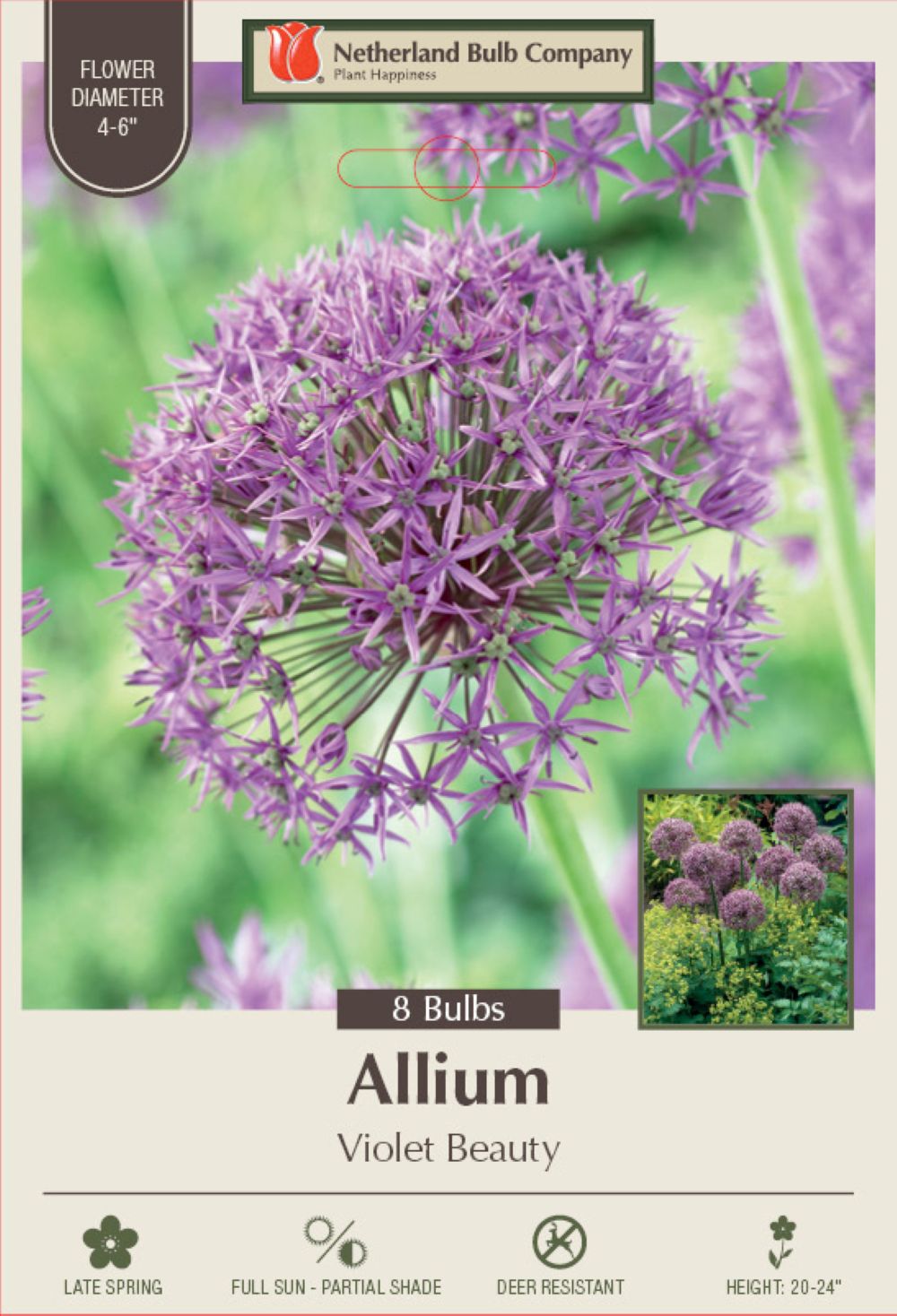 Violet Beauty-NEW! Improved Purple Sensation. Late blooming ornamental onions that perform excellent with early blooming perennials. Many varieties are suitable for dried flowers; pest repellent, all great cut flowers. Measurements are approximate.