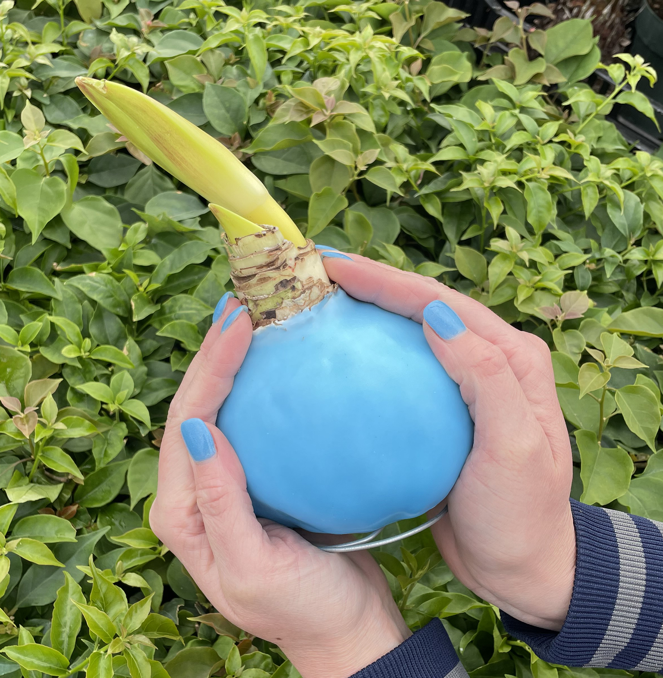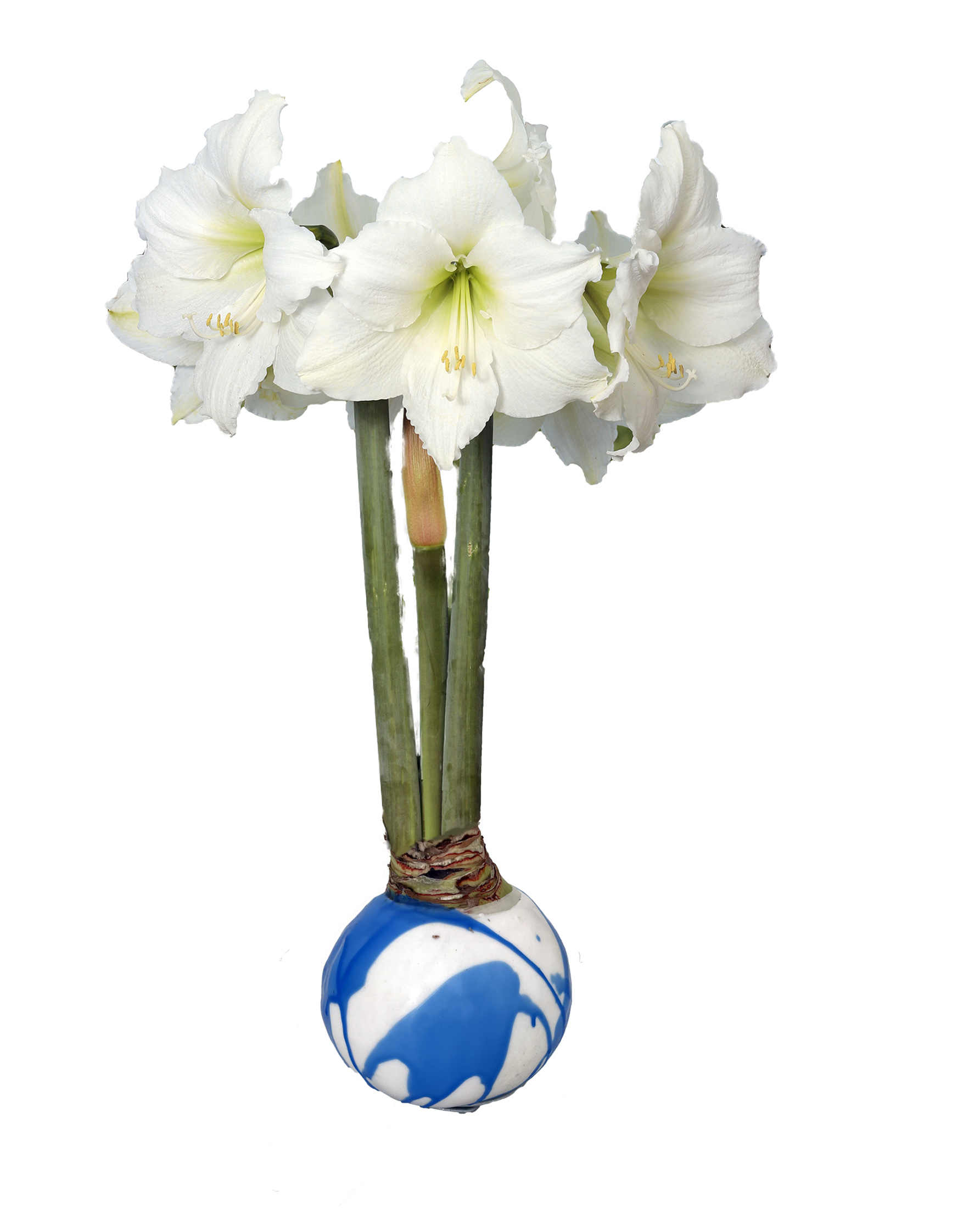 White Candle Blue Waxed Jumbo Amaryllis - Immediate Shipping for Holiday Blooms