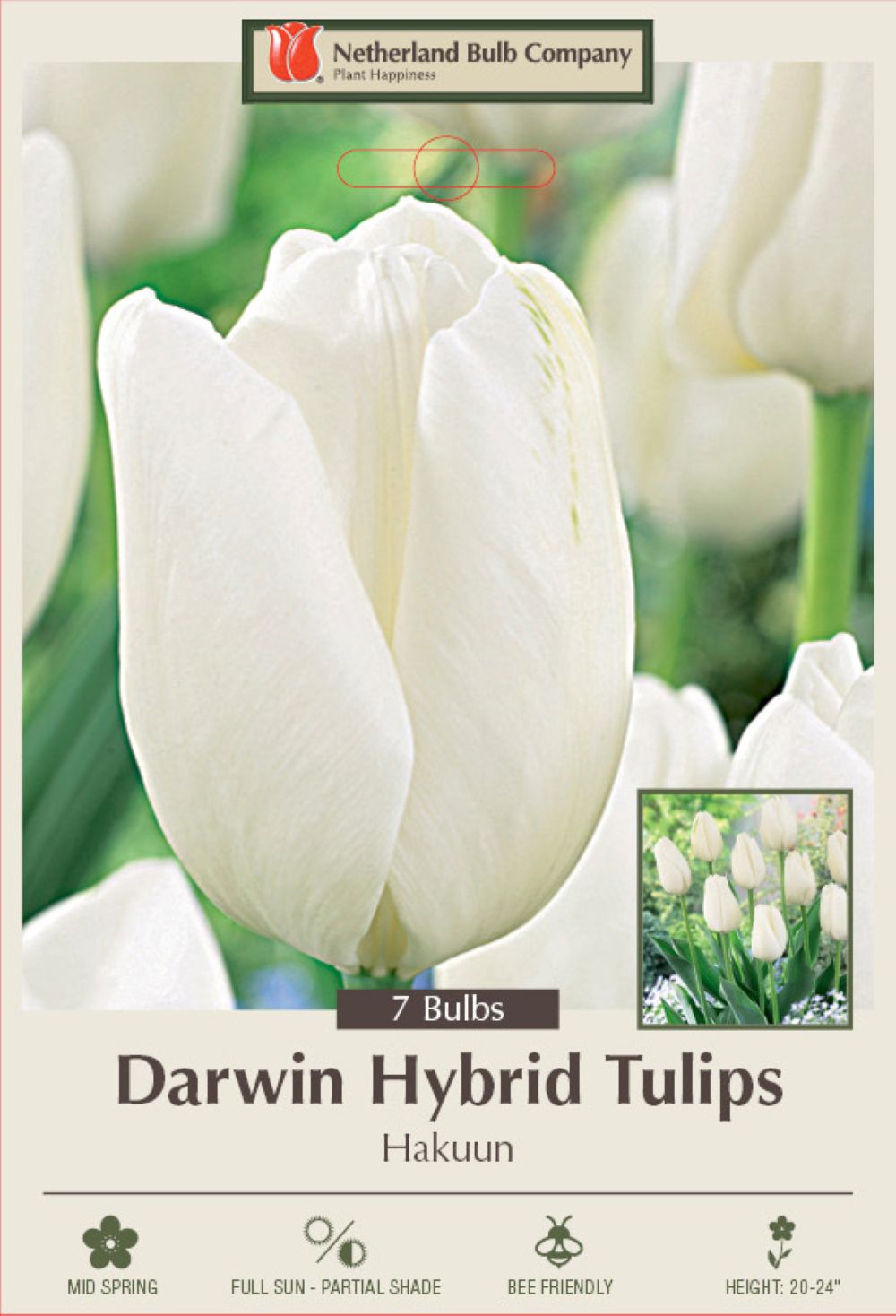 White Cloud Hakuun Darwin Tulip - 7 Bulbs - Strong Grower - 12/+ cm Bulbs