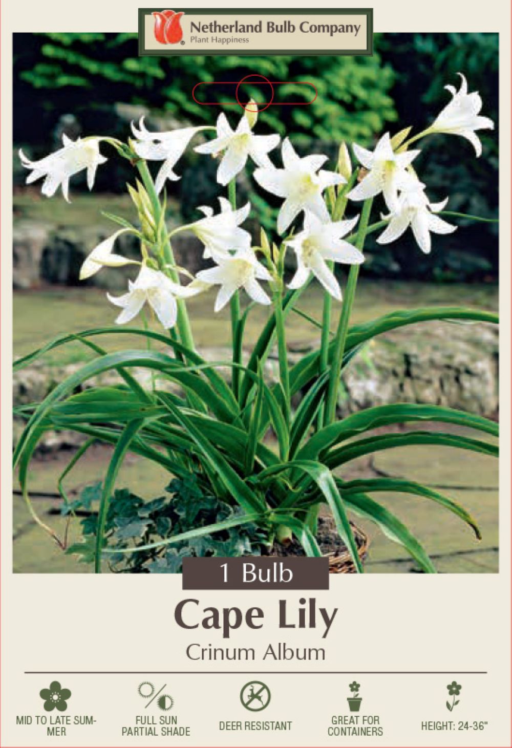 Light: Cape lily does well in full sun or partial shade, but produces more flowers in full sun. Moisture: Cape lily tolerates heavier soils than many bulbs, but still does best in well drained soils. Water freely during the flowering season. Hardiness: USDA Zones 6 - 11. This is one of the most cold hardy of the crinum lilies, but it still cannot tolerate long, cold winters. In the Lower South, Cape lily is evergreen, but the foliage dies to the ground following freezing temperatures. Cape lily can be grown farther north if it is mulched very well with dead leaves in the fall.