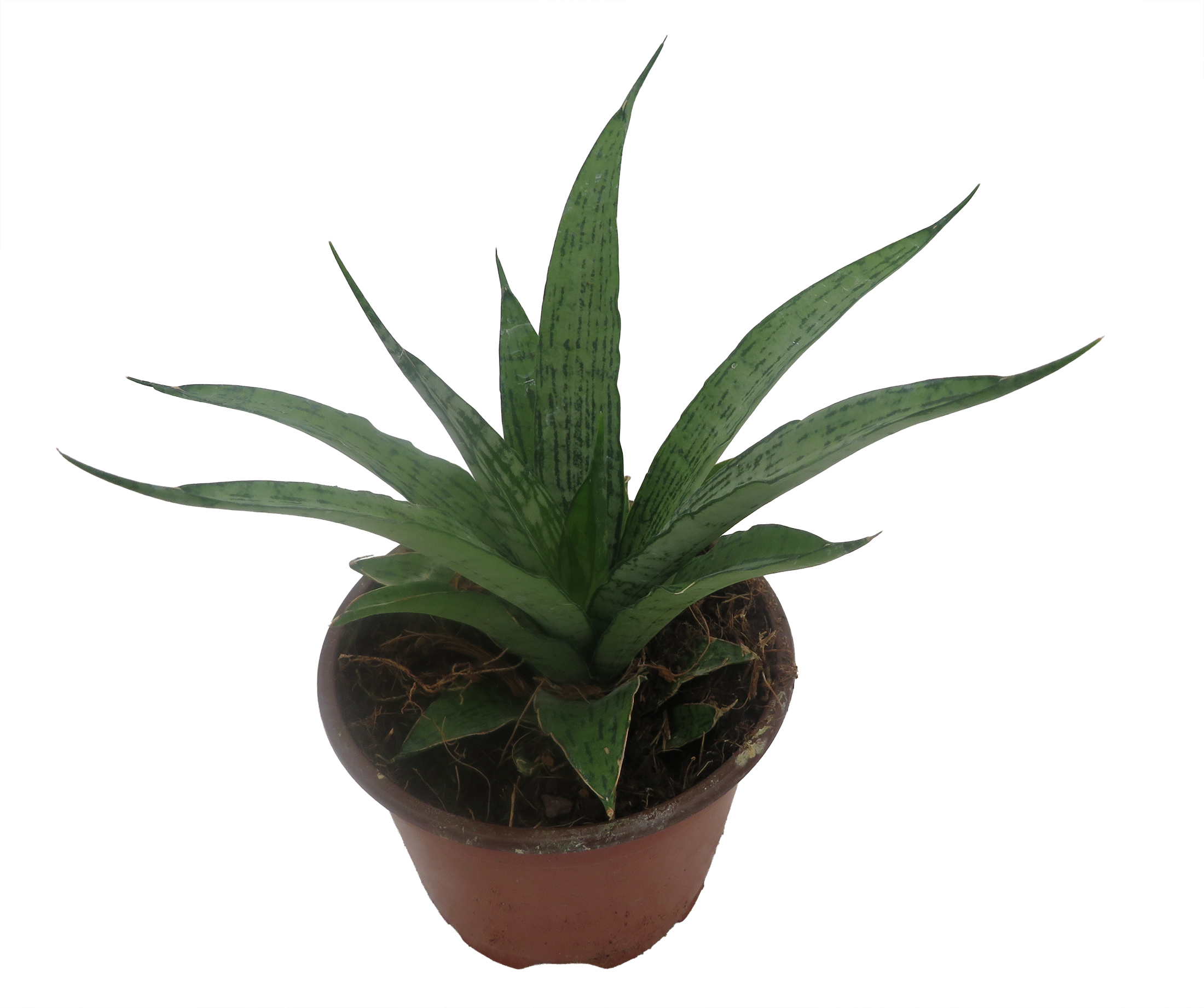 Sansevierias or as they are commonly called Snake Plants or Mother-in-law's Tongue have a rich history of folklore and new science. These plants have a rich history of cultivation. In China, it was kept as a treasured houseplant because the Eight Gods bestowed their eight virtues on those who grew them. These virtues include long life, prosperity, intelligence, beauty, art, poetry, health and strength. The plants were kept near the entrances inside the home so that the eight virtues could pass through in a manner pre-Feng Shui. These plants also were placed in fine restaurants, herbalists, acupuncturists, doctor's offices, accountant's offices, banks, shrines, monastaries, and even in rice paddies. Sansevierias were grown and cherished well before the Chinese ti plant (Dracaena spp.) also known as the Good Luck Bamboo! The sansevieria is also referred to as a dragon for its many unique qualities. As with many Asian martial arts techniques, the strength comes from within. The sansevieria has been known to split large earthen pots upon reaching larger sizes. The Chinese have usually kept this plant potted in a pot within a ceramic pot often ornated with dragons and phoenixes. The attraction of this plant towards dragons is said to be magnetic. An interesting research program has been done by NASA using a few selected plants (one is Sansevieria) for air purification and to curb "Sick Building Syndrome." Growing the Snake Plant is easy. It will thrive in very bright light to almost dark corners of the house. Just water when the soil is dry.